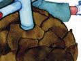 A ani tady, kde končí ulice a uličky a začínají louky, pole a malé zahrádky, nebylo vidět ani živáčka. Červenka se choulila v šípkovém keři a sýkorky pod stříškami zahradních domků. Zvířátka, která se uložila k zimnímu spánku, byla ve svých pelíšcích hluboko zavrtaná. Ta, která pelíšek ještě neměla, si ho honem honem koukala najít. Mezi fičením větru a šustěním sněhových vloček se náhle ozvalo křupání. To zmrzlý sníh křupal jako dobře propečená kůrka chleba.