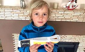 Pyšná Bětuška dnes složila na judu zkoušky na žlutobílý pásek – jediná z deseti kluků. Lump je to náš šikovný!