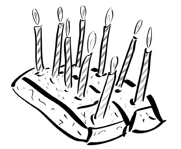 V sedm se usadíme uvařit si snídani. Sotva dám vařit vodu na kafe, už se za mnou ozve snad nejznámější popěvek světa a zaplápolají svíčky narozeninového „dortu“, v tomto případě reprezentovaného jednoduchým dezertem. Tohle jsem teda