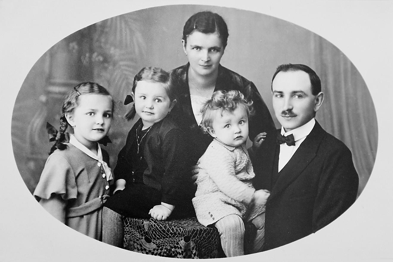 Rodinné foto z roku 1934, zleva Elisabeth, Gertrud, maminka, Bernard, tatínek.
