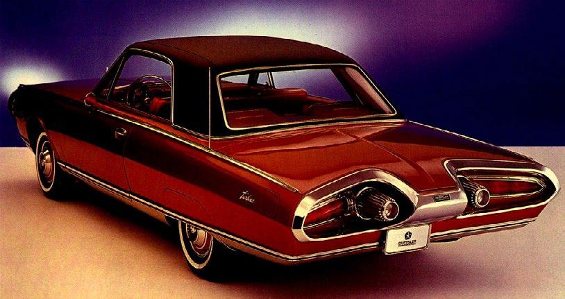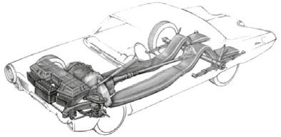 použitelné v běžném provozu a nesežehlo automobil jedoucí za ním. O to se postaraly dvě mohutné ploché výfukové trubky vedoucí pod celým automobilem, končící výstupními koncovkami umístěnými mezi zadními světly výtvarně ztvárněnými v tehdy oblíbeném „raketovém“ stylu.