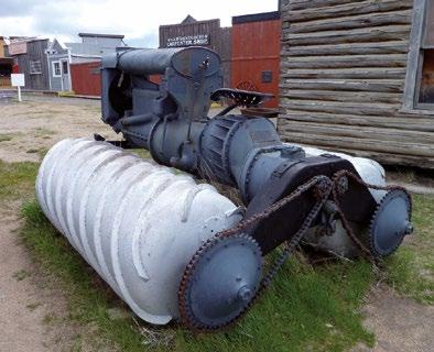 Jedním z prvních strojů s tímto druhem pohonu byla „sněžná lokomotiva“, postavená roku 1907, žádného velkého úspěchu se však nedočkala. Těžkopádný stroj byl vybaven čtyřmi podélně uloženými šrouby poháněnými parním strojem, které jej poháněly vpřed. Na sněhu dosahoval rychlosti 3 km/h. Zatáčel pomocí vyklánění dvou šroubů do stran prostřednictvím ruční kliky a převodu, což bylo zbytečně složité řešení.