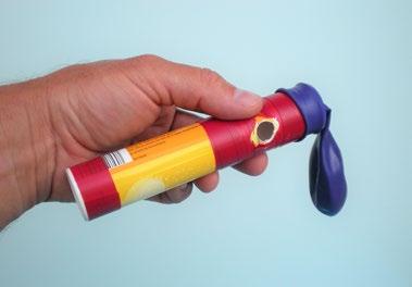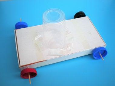 Za základ poslouží třeba krabice od bonboniéry. Prorazte do ní z bočních stran otvory, kterými protáhnete osy ze špejlí. K nim dobře přilepte kola z kartonu, nejlépe pistolí s tavným lepidlem. Na horní stranu autíčka přilepte převrácený kelímek od jogurtu s odstřiženým dnem. Do tohoto kelímku budete vkládat lahvičku s nasazeným balónkem. Ta totiž musí být vytahovací kvůli snadnému nafukování balónku. Nafoukněte jej skrz otvor v lahvičce, přidržte hrdlo balónku stisknuté prsty, aby se nevyfoukl, a vložte lahvičku do držáku z kelímku. Pusťte balónek a můžete startovat, nejlépe na rovném povrchu. Vyrobte více modelů a uspořádejte třeba závody. Kdo dojede nejdál? A co by se dalo vylepšit? Konstruujte, experimentujte a objevujte nové možnosti!