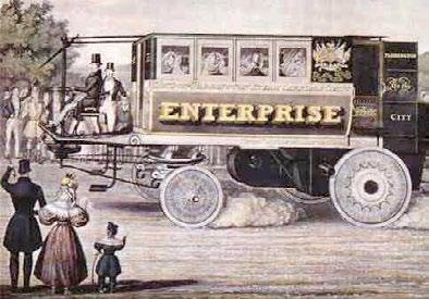 Parní stroje našly během 19. století uplatnění na železnici a dočkaly se mnoha zdokonalení. Vysokotlaké parní stroje bylo možné vyrábět v přijatelnějších rozměrech, neboť kvůli velkému tlaku páry se vystačilo s menšími válci. Na silnicích se objevila první parní vozidla. Zatímco počátkem 19. století byly tyto parovozy u nás zcela ojedinělé, jako například parní automobil Josefa Božka poháněný spalováním oleje z roku 1815, v Anglii se dočkaly podstatně většího rozšíření. V Londýně dokonce Walter Hancock provozoval dopravu parními autobusy. Stále to však nebylo úplně ono, parní stroj klasického typu se přece jen hodil víc na koleje než na silnici.