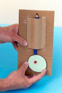 Protože výroba ozubených kol je velmi náročná na přesnost, snadněji se vám s nimi bude otáčet, vyrobíte-li pro ně stojánek, na němž se budou kola dotýkat pod určitým úhlem. Udělejte na kolech ve stejném místě značku a sledujte, kolik otáček vykoná menší kolo při jedné otáčce většího. A jakým směrem se otáčí?