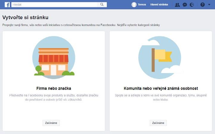 OBRÁZEK 1. 1. Typy facebookových stránek (Zdroj: Facebook)