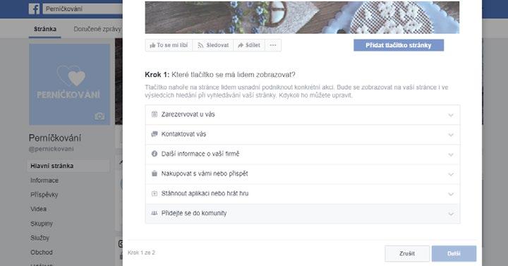 Na svoji stránku můžete rovněž přidat tzv. výzvu k akci, která má v tomto případě podobu tlačítka umístěného na stránce vpravo nahoře. Toto tlačítko návštěvníky stránky navede například k tomu, aby navštívili váš web nebo zavolali do vašeho obchodu. Vaše fanoušky můžete vyzvat, aby: