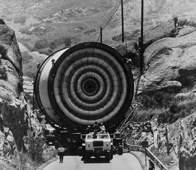 Při manipulaci s rozměrnými stupni Saturnu V byla někdy opravdu potíž. Na snímku testovací exemplář druhého stupně putující ke zkouškám do kalifornské Santa Susany.