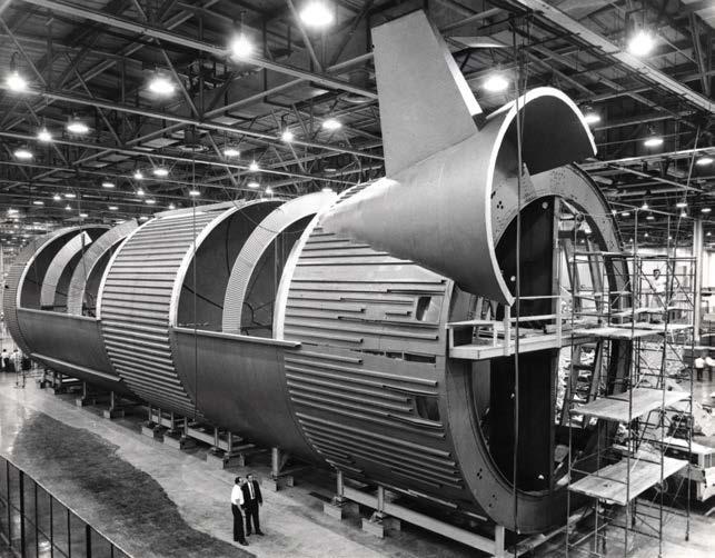 Výroba přístrojových prstenců IU pro Saturn V: vpředu je pro raketu výrobního čísla 504 (nakonec Apollo 9), za ním pro 503 (Apollo 8).