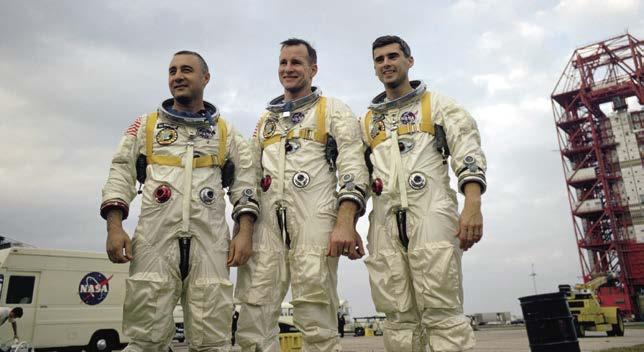 Posádka: Virgil Grissom (Command Pilot), Edward White (Senior Pilot) a Roger Chaffee (Pilot).