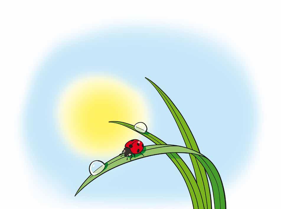 Kapka rosy na paloučku a paprsek sluníčka, svět se budí pomaloučku do nového raníčka.