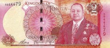 Symboly měnových jednotek – bankovka Tonga 2 pa´anga z roku 2009 (horní snímek) a 2015 (dolní snímek); u obou se symbolem $