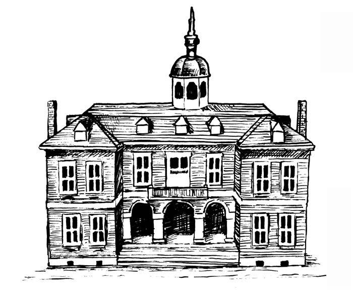 dva tisíce obyvatel a jenž připomínal spíše britskou vesnici, neboť zahrnoval zahrady, louky, pole, prašné, blátivé ulice a jednopatrové dřevěné či z neomítnutých cihel stavěné domky. Jeho hlavní třída vynikala jen tím, že na jejím západním konci vyrostla College of William and Mary a na východním konci stál Capitol. V prvním případě šlo o jednu z nejstarších vyšších vzdělávacích institucí v britské Americe, zmíněná druhá budova se zviditelnila tím, že se v jejím východním křídle scházelo dvakrát ročně virginské shromáždění, v němž jednoho dne roku 1758 zasedl do svého křesla i George Washington.