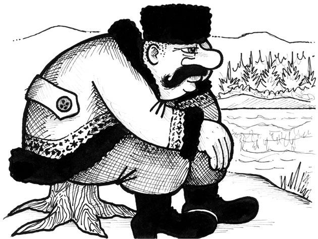 “Well, there’s an easy way to get rid of this misery,” said the old man . He peeled off his fur coat, took off his shoes and plopped into the river . The poor man had hardly managed to blink his eyes when the old man was already coming out of the water, carrying a golden axe in his hand .