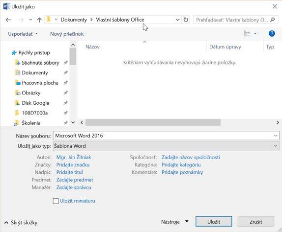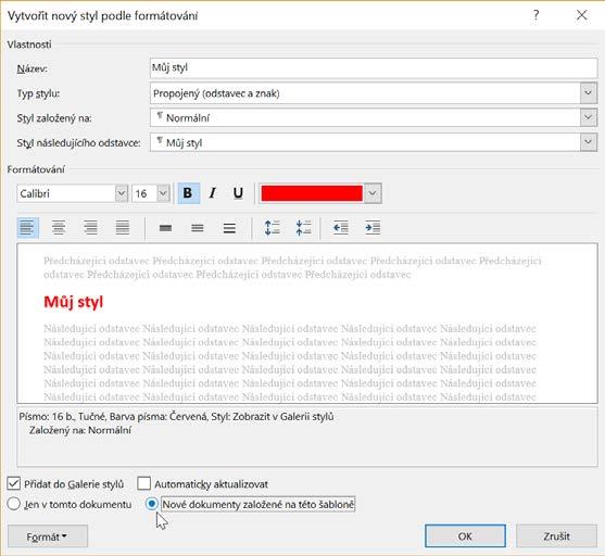 Tip: Vámi vytvořený styl lze použít i ve všech nových dokumentech. Provedete to následovně: