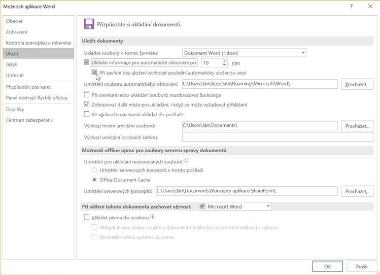 Word po spuštění