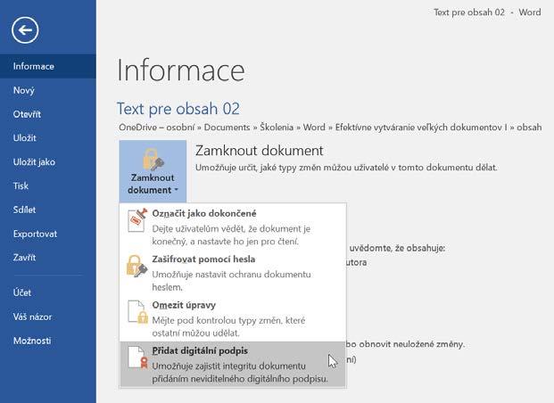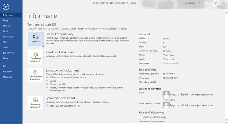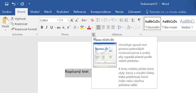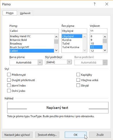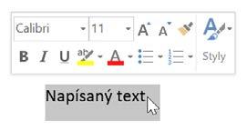 Poznámka: Text, který označíte styly (zejména nadpisy Nadpis 1, Nadpis 2, Nadpis 3), se používá k vytváření obsahu v dokumentu (karta Reference→Obsah).