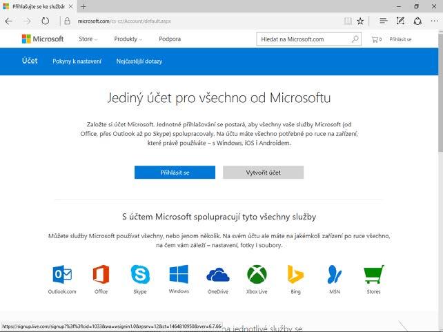 1. Začněte tím, že navštívíte webovou stránku https://www.microsoft.com/cs-cz/Account/default. aspx. Po přečtení úvodních informací klepněte na tlačítko Vytvořit účet