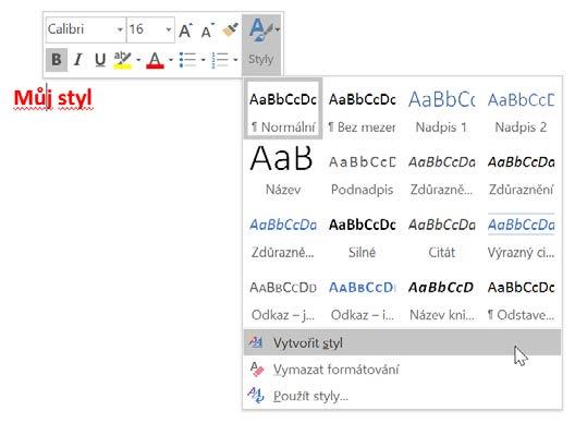 V případě, že potřebujete často používat konkrétní formátování pro text (například velikost 16 bodů, tučné a červená barva), je efektivnější vytvořit nový styl. Postup je následující: