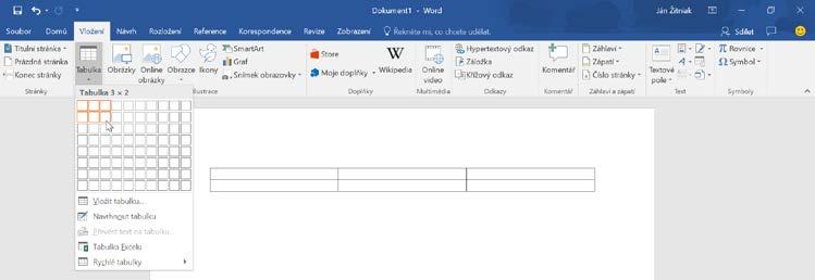 Obrázek 1.43: Vložení tabulky zadáním počtu sloupců a řádků