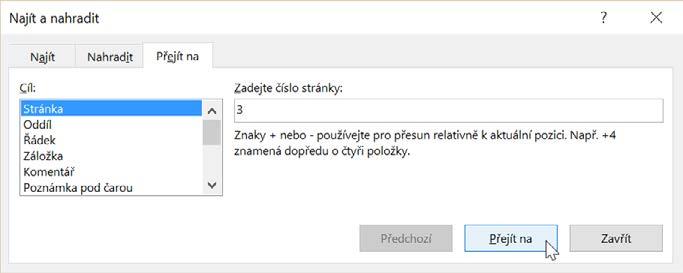 Tip: Příkaz Přejít na aktivujeme klávesovou zkratkou Ctrl+G.