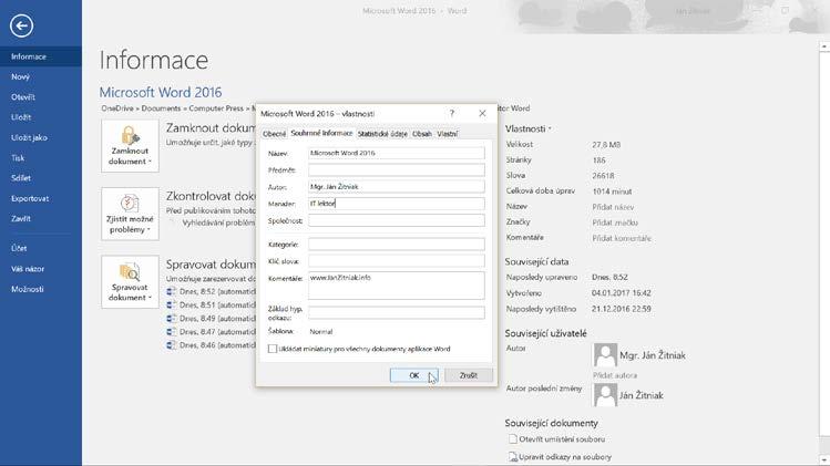Každý několikastránkový dokument by měl obsahovat číslování, ve firemních dokumentech najdete text vytištěný na hlavičkovém papíře přímo ve Wordu. Mezi jednotlivými částmi dokumentu můžete vytvářet interaktivní propojení, která napomáhají čtenáři rychle se v dokumentu zorientovat a přejít na požadované místo. Důležitá místa si můžete také vhodně poznačit a později se k nim vrátit.