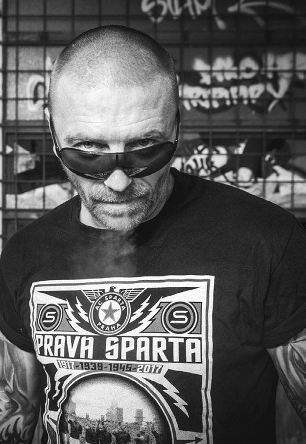 Na srazech sparÈansk ˘ch fanou‰kÛ jsme v‰ichni tak trochu jako jedna velká rodina. Nechám se obejmout, prohodím s ním pár slov a podepí‰u se mu fixou na r uku, hned vedle místa, kde má v y tetovan˘ sparÈansk ˘ esko. Poplácáme se po ramenou a popfiejeme si v‰echno dobr ˘. Na chv ilku zÛstávám sám. RozhlíÏím se po tûch lidech, usmívám se a je mi stra‰nû dobfie. Mám tahle setkání fandÛ Spart y hroznû rád. Tak tohle jsou lidi, pro kter ˘