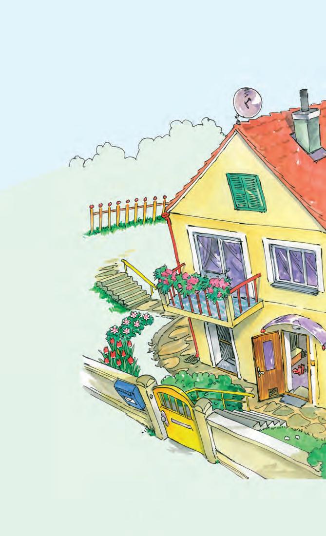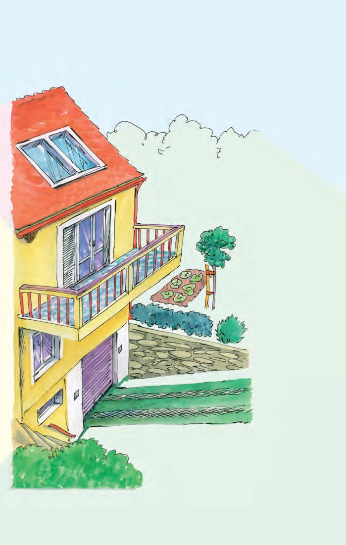 房子旁边有漂亮的 花园。 /fángzipángbiānyŏu piàoliangdehuāyuán/