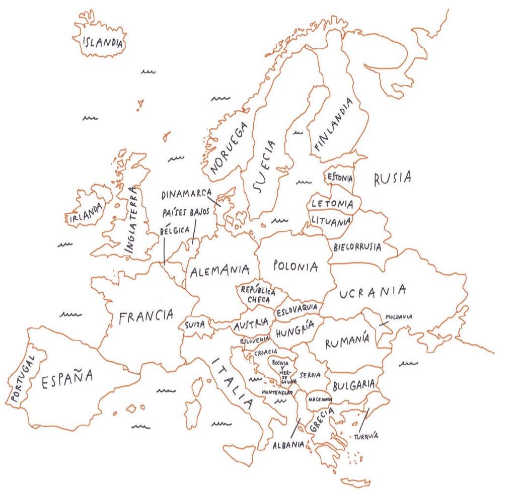 4. ¿De dónde son? Completa las frases con ayuda del mapa de Europa. / Odkud jsou? S pomocí mapy Evropy, doplň chybějící slova.