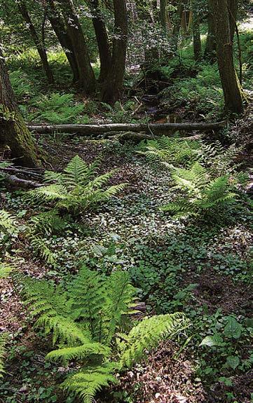 Kapradiny ve vlhkém údolí smíšeného lesa v pahorkatině