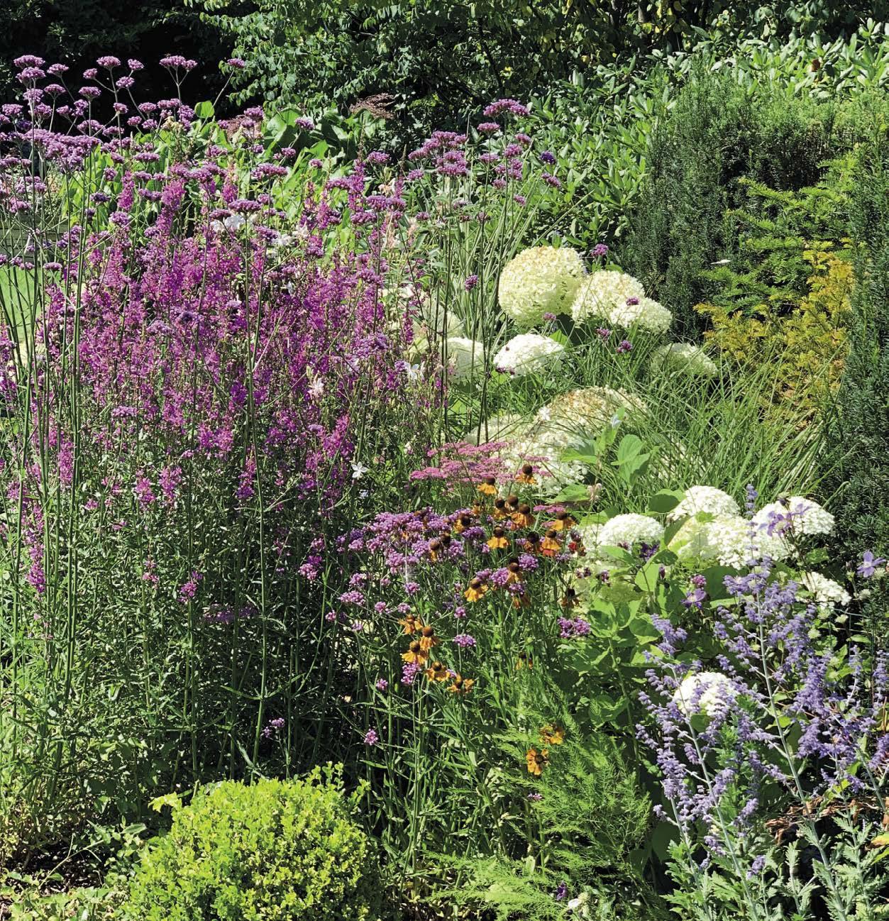 Na zahradě orientované na jih všechno bohatě kvete.