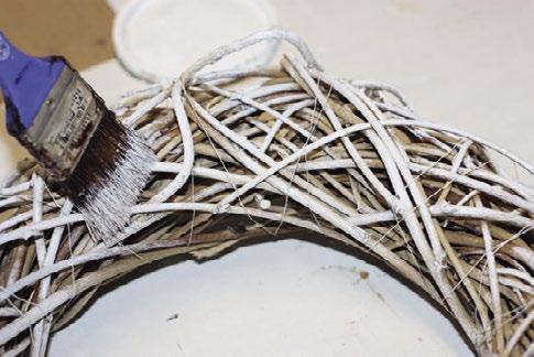 5. Takto připravený korpus jemně natřeme bílou akrylovou barvou a necháme zaschnout. Větvičky však nemusíme zatřít zcela, místy můžeme nechat prosvítat jejich původní odstín.