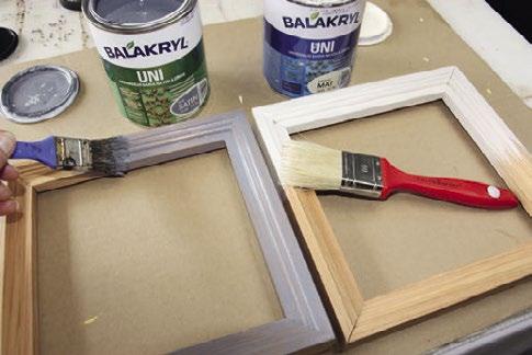 1. Oba rámečky nejdříve natřeme akrylovými barvami – jeden bílou, druhý šedou − a necháme zaschnout.