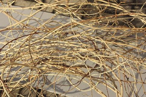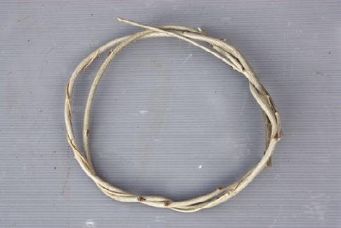 4. Tenkým drátkem pak vyrobený korpus omotáme a tím stáhneme do výsledné podoby. Tento bod nemusíme ale striktně dodržet, jakmile šlahouny uschnou, již se nerozpletou. Přečnívající konce šlahounů odstřihneme tak, aby nikde netrčely z korpusu ven.
