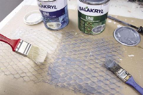 5. Potom oba kusy pletiva natřeme – jeden opět bílou a druhý šedou barvou − a zase necháme zaschnout.