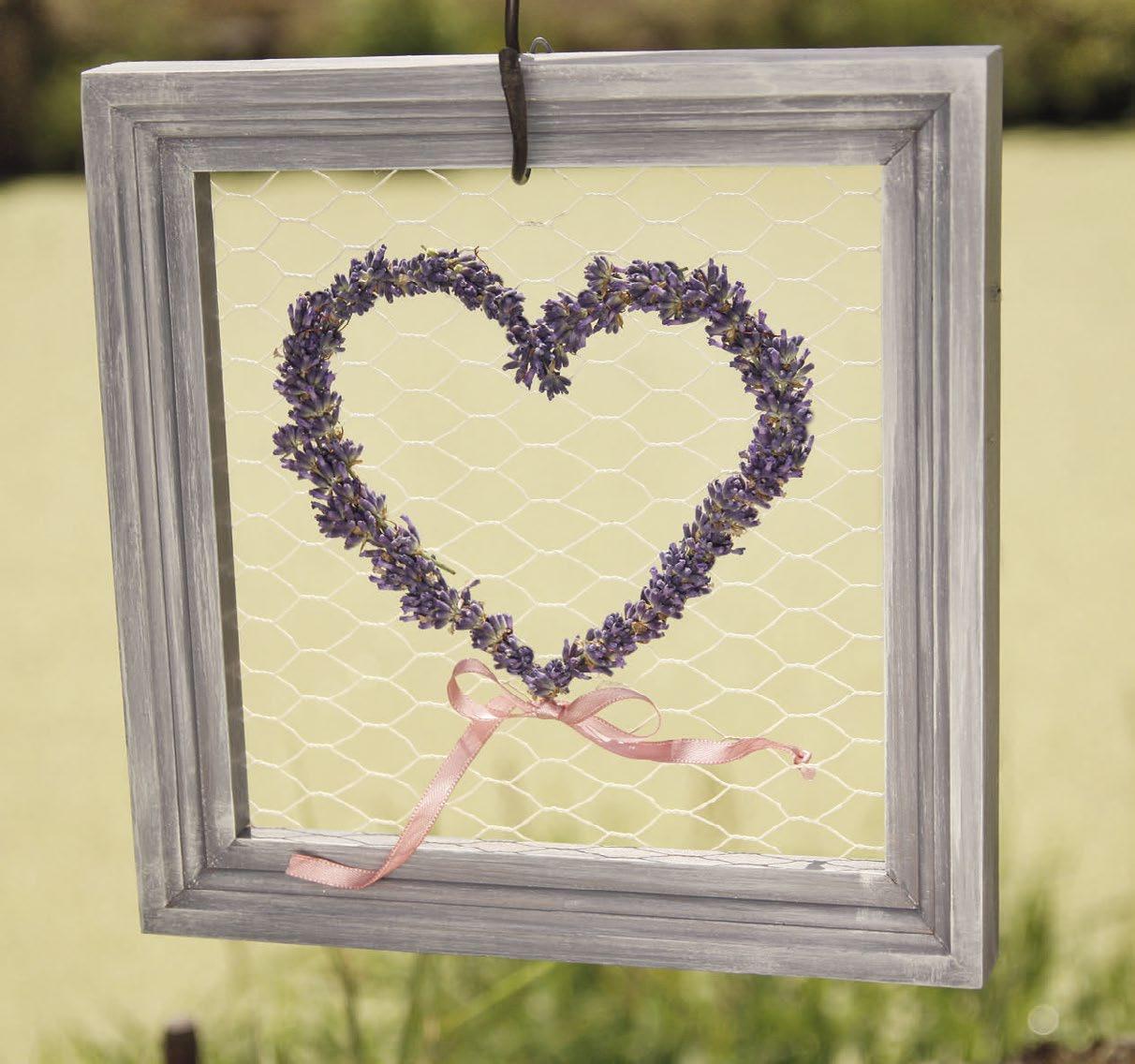 Levandule, kterou v knize hodně používám, je velmi vhodná jak k lisování, tak k sušení. Navíc patří mezi druhy květin, ze kterých lze vyrábět dekorace i v jejím čerstvém stavu jako v případě věnců nebo jejího proplétání do pletiva. Levandule se bude postupně vysušovat v hotovém díle, což jí však na kráse neubere. Stejně tak nikam nezmizí její vůně.