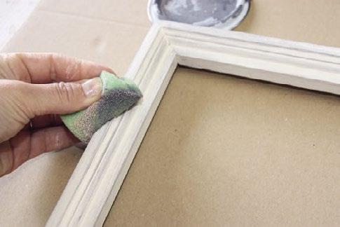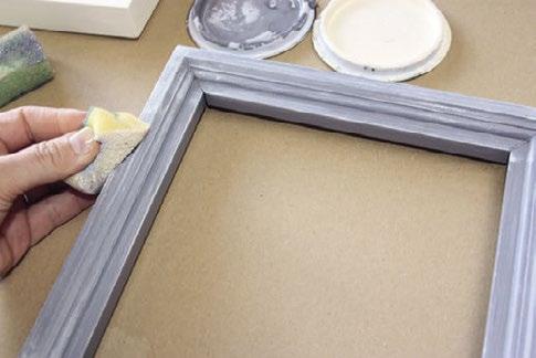 2. Potom na nich vytvoříme patinu tak, že na šedý rámeček naneseme houbičkou bílou barvu a rozmažeme ji po povrchu.