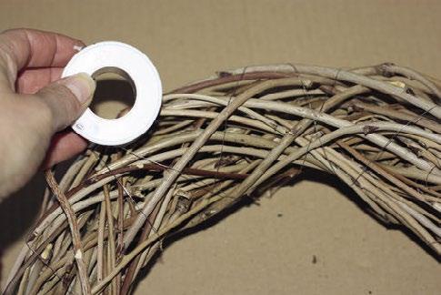 2. Potom vytvoříme korpus. Postupujeme tak, že do rukou uchopíme šlahoun a z jednoho jeho konce uděláme libovolně velký kruh. Druhý konec kolem něho pak obtáčíme v protisměru. V této fázi si zvolíme přední část budoucího věnce a tu dále tvarujeme.