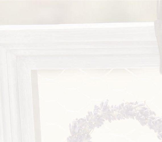 Co budeme potřebovat: dřevěné rámečky • bílou a šedou akrylovou barvu • štětce • hadřík • houbičku • bezbarvý lak • králičí pletivo • tavicí pistoli • menší kleště • misku na vodu • bílý papír • obyčejnou tužku • nůžky • univerzální lepidlo, které po zaschnutí zprůhlední • sušené plátky růží různých barev • čerstvou levanduli • stužky • tenký drátek