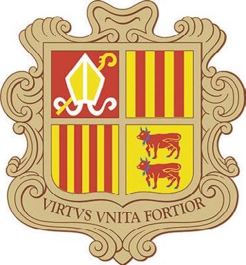Andorrský znak, umístěný i na vlajce, zachycuje dějiny země – mitra připomíná biskupy ze Seu d’Urgell, tři červené kůly hrabata z Foix, čtyři kůly zastupují Katalánsko a dva volové náleží hrabatům z Béarn.