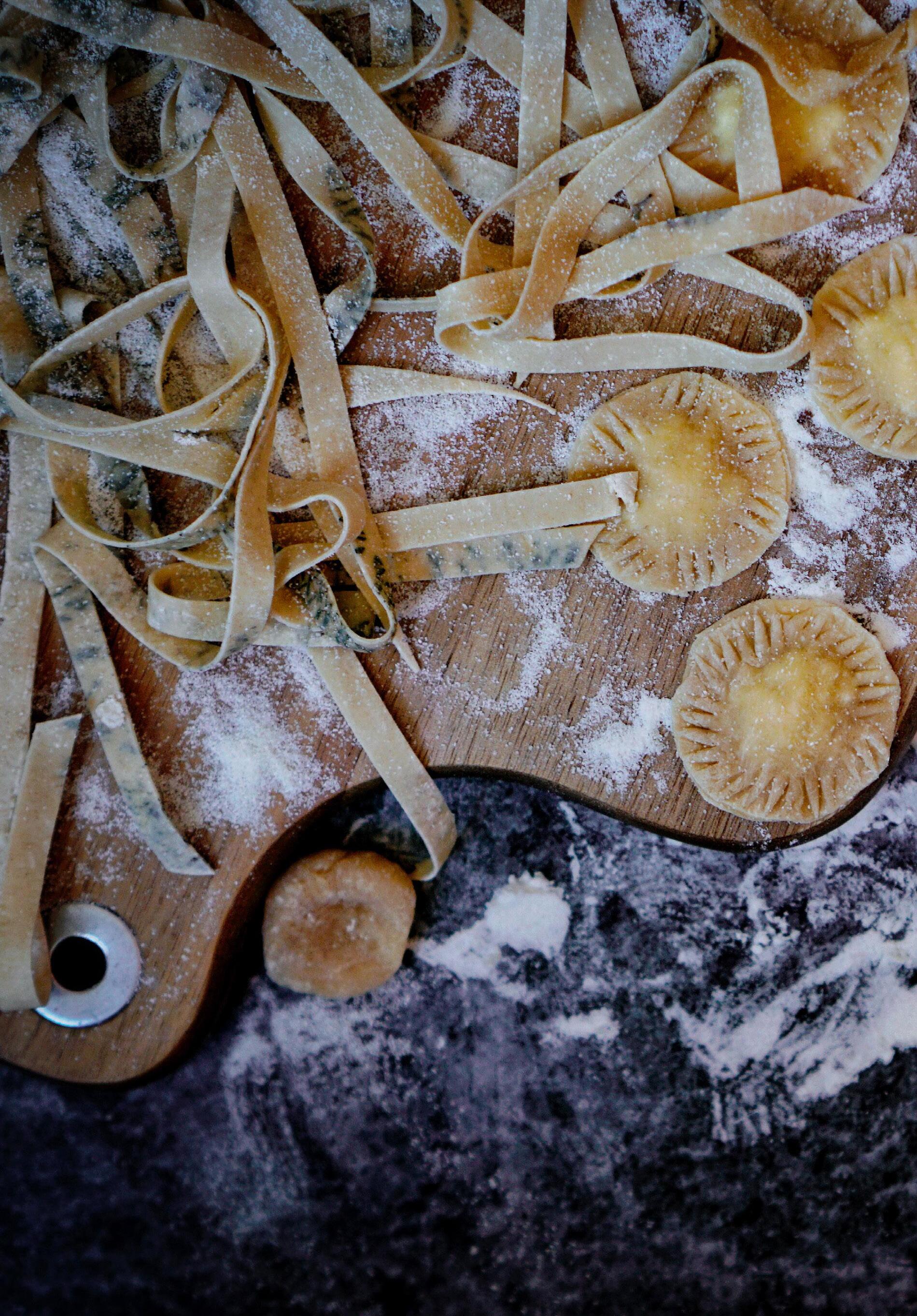 Obecně platí, že doma vyráběné těstoviny mají základní poměr: na 100 g mouky 1 celé vejce, pak ještě dle potřeby 1 lžíce vody či oleje, což zajistí lepší pružnost. Já ráda přidávám ještě žloutek, těstovina je pak žlutější a sametovější.