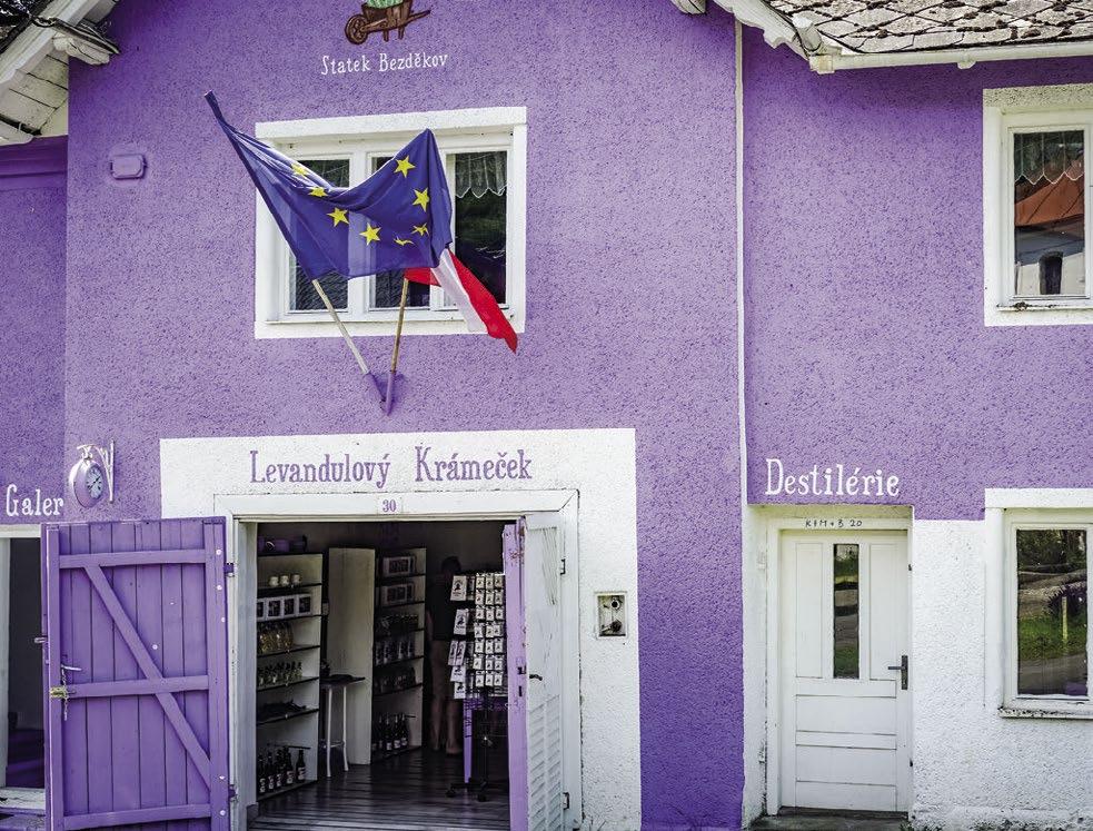 Levandulový Krámeček najdete snadno – podle nepřehlédnutelné fialové fasády.