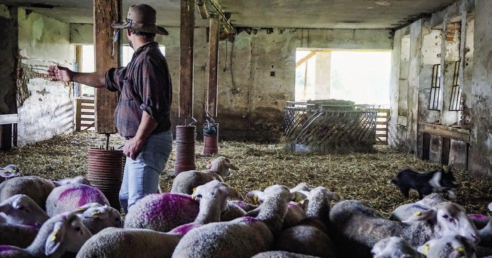 nichž se během mé přítomnosti projíždějí jeho děti. V kurníku se slepicemi sbíráme vajíčka, zatímco v kotcích odpočívají border kolie. Tohle psí plemeno má pasení ovcí zakořeněno hluboko v genech. Pan Hrdlička mi ukazuje, jak k němu naženou stádo ovcí. Bylo neuvěřitelné, že i přes viditelný adrenalin z přesunující se masy zvířat pes poslouchal na slovo.
