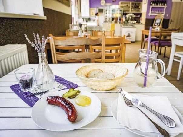 Asi pět kilometrů od levandulové „základny“ v Bezděkově najdete město Úsov. Všudypřítomné levandulové záhony jsou předzvěstí, že tudy vedou stopy opět k Drlíkům. Je to tak. Hned na náměstí provozují �evandulové bistro, kde posunuli gastronomii ještě o kus dál. Tuhle aromatickou bylinu používají v kuchyni jako přísadu do jídel. Ochutnala jsem u nich levandulové těstoviny s masovou směsí a levandulovou klobásu.