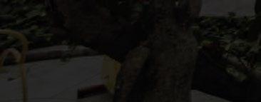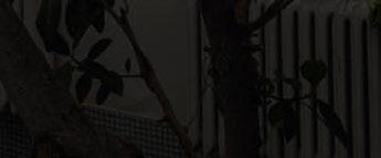 nost s krytým bazénem pražského činžovního domu. Kolem bazénu rostou několikametrové pryžodárné fíkusy.