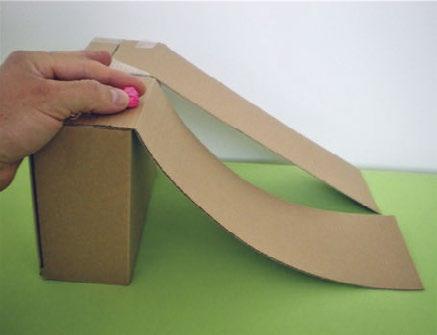 Bude ji tvořit rovný pruh kartonu šířky asi 5 cm, který na jedné straně podložíte krabicí nebo hromádkou knih. Délku zvolte podle výšky krabice, měla by být alespoň půl metru. Druhá dráha bude stejné šířky, jen o něco delší, protože ji musíte prohnout do oblouku.