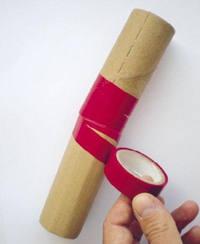 Jako stavební materiál na opravdu velkou dráhu vám výborně poslouží trubičky od toaletního papíru, takže je pilně sbírejte. K jejich spojování použijte elektrikářskou izolační pásku, která je pružnější než běžná izolepa. Začněte tím, že první trubičku ovinete několika závity pásky. Jakmile dojdete na konec trubičky, přiložte k ní další a spoj několikrát oblepte. Nepřestřihujte pásku, jen několika závity přejeďte na konec této trubičky, opět přiložte další a takto pokračujte stále dál, dokud vám bude stačit materiál.