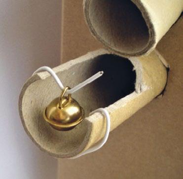 Zvonící dráhu snadno vyrobíte úpravou dráhy předchozí. Stačí, když na začátek každé trubičky (kromě té první) připevníte třeba pomocí drátu z kancelářské sponky malou rolničku nebo jiný drobný kovový předmět. Trubičky posuňte tak, aby kulička padající z předchozí trubičky dojela dostatečnou rychlostí až k rolničce, která zároveň poslouží jako zábrana proti vypadnutí kuličky. Jízda kuličky tak bude doprovázena jemným cinkáním.