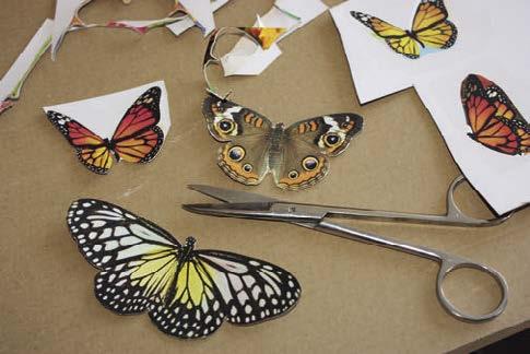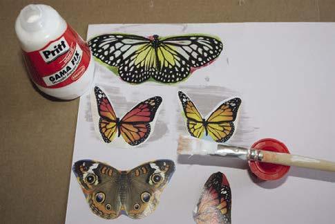 9. Vyrobíme zdobení věnce. Z časopisu vystřihneme obrázky motýlků.