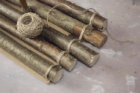 4. Boční strany základu voru zpevníme přírodním provázkem, který ozdobně propleteme cikcak mezi větvemi.
